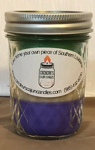 Here is our triple layer of purple, gold and green representing Mardi Gras. Our King Cake scent is like a fresh baked cinnaman roll with a savory sweet frosting.